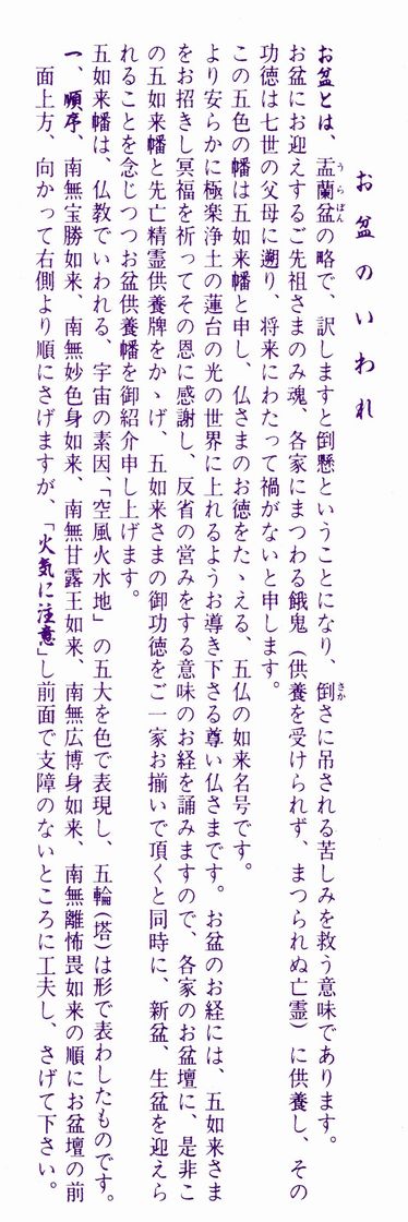 封筒にお盆のいわれの説明がありますので、檀家様への配布に最適です。