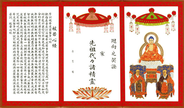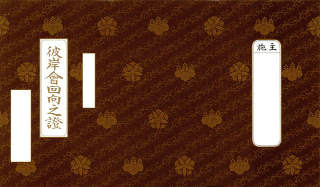 | 当社オリジナルの「お彼岸用」三尊仏廻向之證は、先祖供養の証として檀家様・施主様への配布に最適です。三つ折りにでき、『専用封筒』をサービスでお付けしておりますので、彼岸会の法要にお役立て下さい。 ※200枚以上ご注文の場合は山号・寺名印刷を無料サービスいたしますので、ご希望の際はお申し付け下さい。 | |