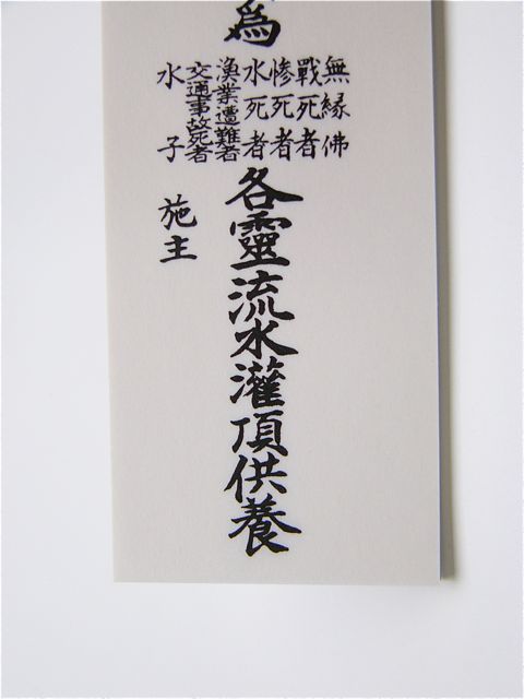 【TOP】大塔オンラインショップ お盆用品・お彼岸用品お盆供養幡・真幡・水溶性供養紙 お盆用品・お彼岸用品 大塔特選オリジナル商品 環境に配慮し特殊な紙を使用した、流水灌頂供養紙です。水溶性で水に溶けますから、川施餓鬼や精霊流しにご使用いただけます。また、墓地に納め置きしていただく事も可能です。商品番号:339 流水灌頂供養紙(水溶性)50枚1口 価格: ¥1,100 (税込) 販売期間: 数量: 口 在庫 在庫あり 返品についての詳細はこちら 【商品説明・仕様】●本体サイズ:16×5.5cm●水溶性●50枚綴り 他にもこんな商品がございます。 お盆供養幡(水溶性)50組1口【曹洞宗・臨済宗諸寺院様用】 ¥11,000(税込) 数量: 口 お盆供養幡(不水溶性)50組1口【曹洞宗・臨済宗諸寺院様用】 ¥7,700(税込) 数量: 口 お盆供養幡(五如来・不水溶性)50組1口【浄土宗・臨済宗諸寺院様用】 ¥7,700(税込) 数量: 口 お盆供養幡(七如来・不水溶性)50組1口【浄土宗・臨済宗諸寺院様用】 ¥8,250(税込) 数量: 口 お盆供養幡(水溶性)50組1口【真言宗・天台宗諸寺院様用】 ¥11,000(税込) 数量: 口 お盆供養幡(不水溶性)50組1口【真言宗・天台宗諸寺院様用】 ¥7,700(税込) 数量: 口 お盆供養幡(不水溶性)50組1口【日蓮宗・法華宗諸寺院様用】 ¥8,250(税込) 数量: 口 在家用お盆棚真幡(50組1口) ¥11,000(税込) 数量: 口 五輪塔供養紙(水溶性)50枚1口 ¥1,320(税込) 数量: 口 千体地蔵流し札(水溶性)50枚1口 ¥1,100(税込) 数量: 口 寺院用真幡(五色)竹棒付 ¥1,980(税込) ~ 商品を見る 寺院用真幡(白色)竹棒付 ¥1,980(税込) ~ 商品を見る