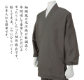 紬織風の光沢感が格調高い、ゆったりとしたゴム袖作務衣です。